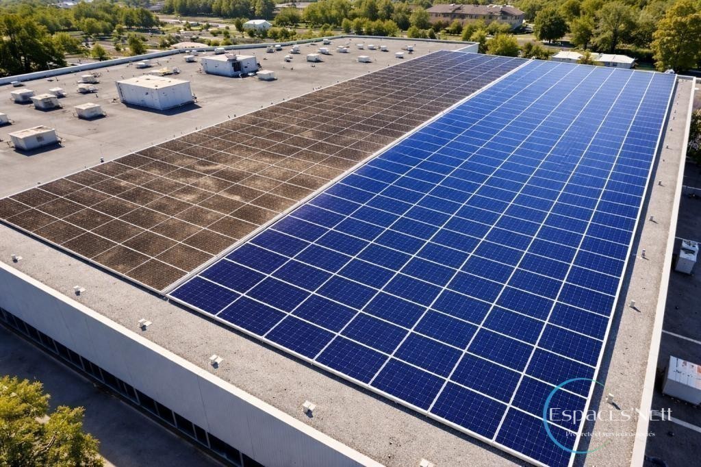 Assurez la performance de vos panneaux photovoltaïques avec ESPACES'NETT à Béziers. Un nettoyage régulier est essentiel pour maximiser leur efficacité. Méfiez-vous des prestataires peu scrupuleux qui utilisent des méthodes inadaptées pouvant endommager vos installations. Faites confiance à notre expertise pour un service de qualité.